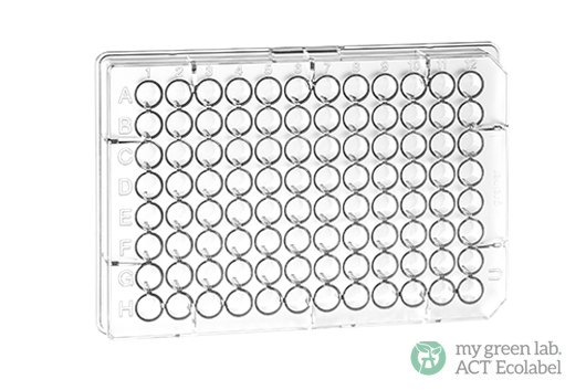 CELL CULTURE MICROPLATE, 96 WELL, PS, F-BOTTOM (CHIMNEY WELL), µCLEAR®, WHITE, CELLSTAR®, TC, LID WITH CONDENSATION RINGS, STERILE, 8 PCS./BAG