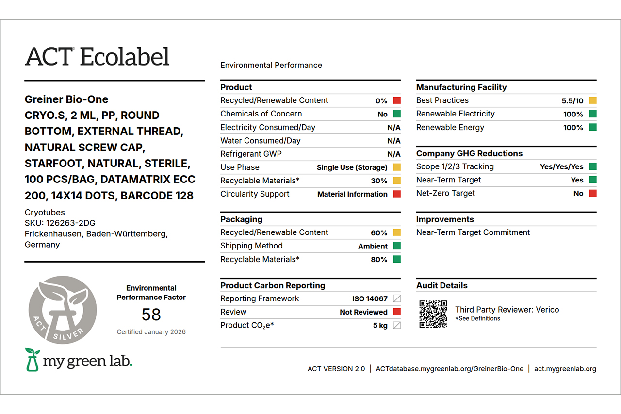 CRYO.S, 2 ML, PP, ROUND BOTTOM, EXTERNAL THREAD, NATURAL SCREW CAP, STARFOOT, NATURAL, STERILE, 100 PCS./BAG, DATAMATRIX ECC 200, 14X14 DOTS, BARCODE 128 |