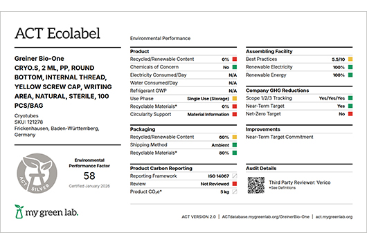 CRYO.S, 2 ML, PP, ROUND BOTTOM, INTERNAL THREAD, YELLOW SCREW CAP, WRITING AREA, NATURAL, STERILE, 100 PCS./BAG |