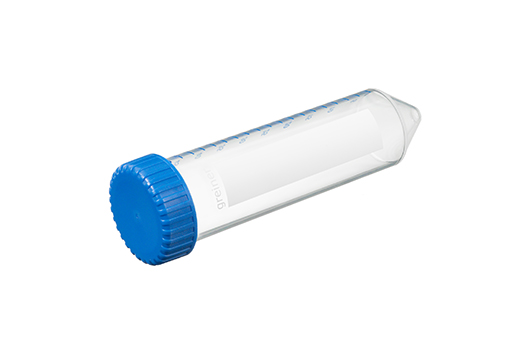 TUBE, 50 ML, PP, 30/115 MM, CONICAL BOTTOM, CELLSTAR®, BLUE SCREW CAP, NATURAL, GRADUATED, WRITING AREA, STERILE, 25 PCS./RACK |