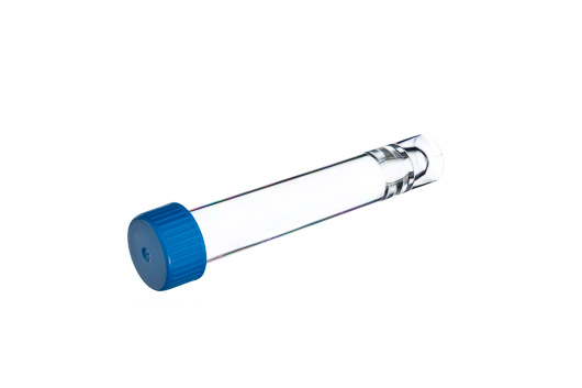 TUBE, 12 ML, PS, 16,8/100 MM, CONICAL BOTTOM, BLUE BAYONET CAP, SUPPORT SKIRT, CLEAR, STERILE, 25 PCS./BAG |