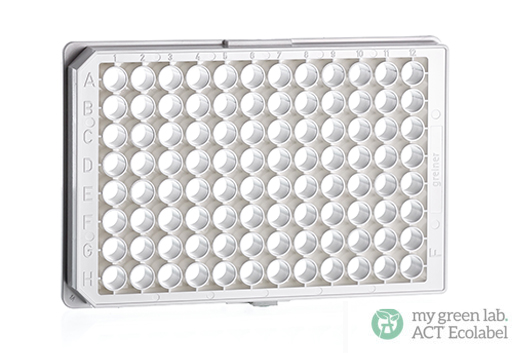 描述: 96孔细胞培养微孔板,F型底烟囱形,TC处理,白色μClear®底,灭菌,无盖,10个/包