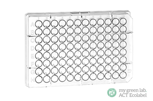 96孔细胞培养微孔板,F型底烟囱形,TC处理,白色,灭菌,带冷凝环盖,8个/包