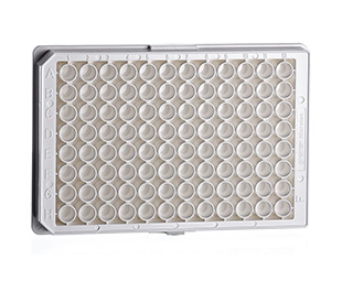 96孔细胞培养微孔板,F型底烟囱形,TC处理,白色μClear®底,灭菌,带盖,8个/包