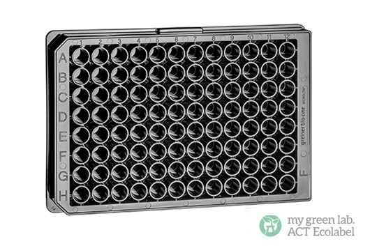 96孔细胞培养微孔板,F型底烟囱形,TC处理,黑色μClear®底,灭菌,带冷凝环盖,8个/包