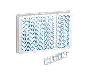 描述: 96孔ELISA微孔板,单孔可拆,12*C8,C型底,高结合力,透明色,蓝色孔边,10个/包