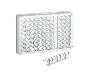 描述: 96孔ELISA微孔板,单孔可拆,12*C8,C型底,高结合力,透明色,绿色孔边,10个/包