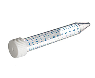 离心管,15 ml,聚丙烯材质,17/120 mm, 白色螺旋盖,蓝色刻度线,灭菌,50个